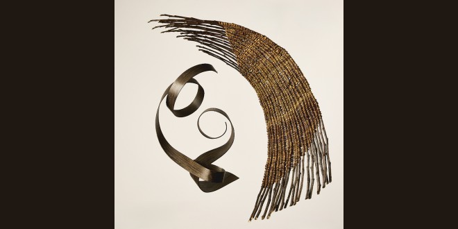It might seem a contradiction that stillness be put into form, yet amid these pieces, made of natural materials and carefully crafted to delicately hold space unobtrusively, then hypnotically a stillness is invoked. I fell into that deep quietness that is also found in Meeting. Mobiles, in sweeping curves, bring a mesmerising calm. In weavings, dandelion surfaces intricately twisted and entwined to present a beautiful array of colours and skill, and took my thoughts to our connection with the land.