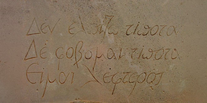 When a visitor makes a circumnavigation of the Venetian walls of Heraklion, Crete, they come to the Martinengo Bastion. There they will find the tomb of Nikos Kazantzakis.