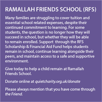 Friends in Lebanon and Palestine have been forced to cancel their Middle East Yearly Meeting (YM) due to the war. Middle East YM was due to meet this month, on 6-10 April, for the first time since the 1990s. Michael Eccles, executive secretary of Friends World Committee – Europe & Middle East Section (FWCC-EMES), told the Friend: ‘Around fifty people had registered from all over the world, including Australia, Britain, Ireland, Palestine, Lebanon, and the USA.’